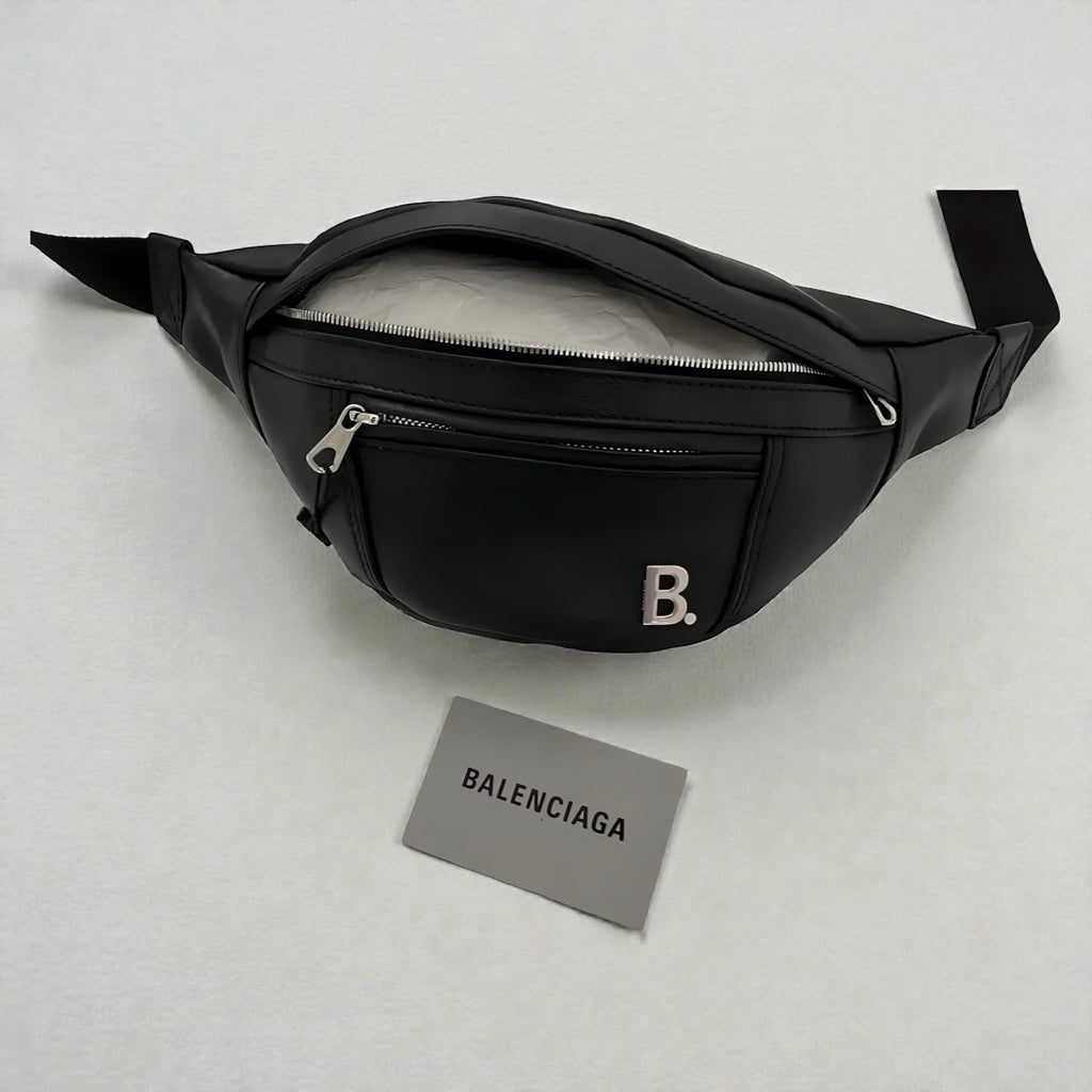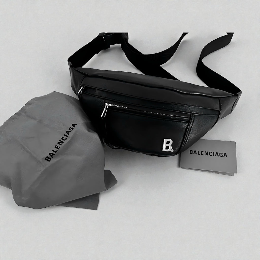 100% Authentic Brand New With Tags Balenciaga Plaque Belt Bag Bum Bag in Black Calfskin Made in Italy