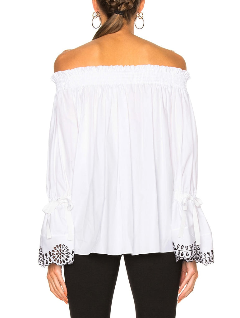 100% Authentic Brand New With Tags ALEXANDER MCQUEEN Off-the-shoulder Broderie Anglaise-trimmed Cotton Blouse
